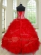 Red Lace Up Sweetheart Beading and Ruffles 15th Birthday Dress Organza Sleeveless