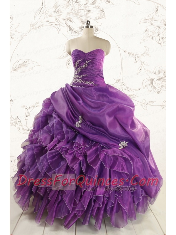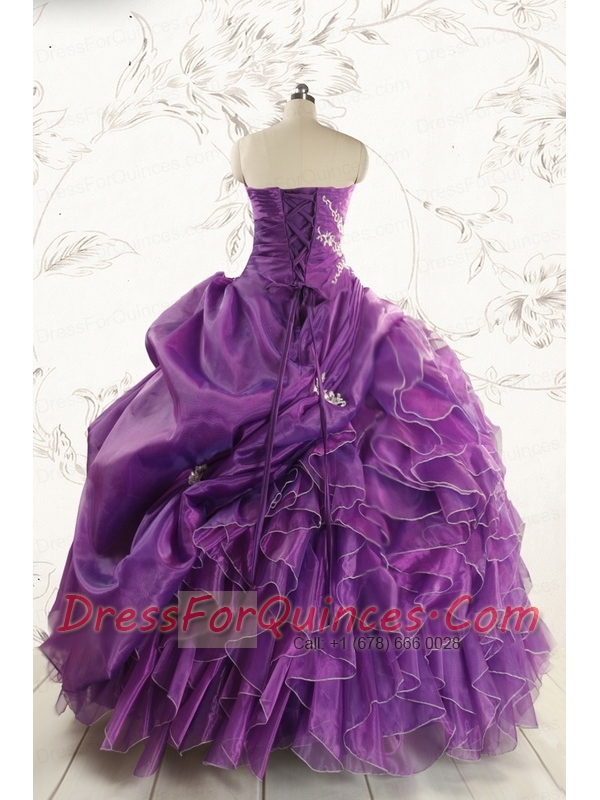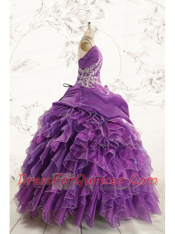 Romantic Purple Ball Gown 2015 Quinceanera Dress with Appliques and Ruffles