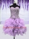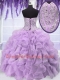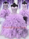 Simple Four Piece Lavender Organza Lace Up Sweetheart Sleeveless Floor Length Sweet 16 Dresses Ruffles and Sequins