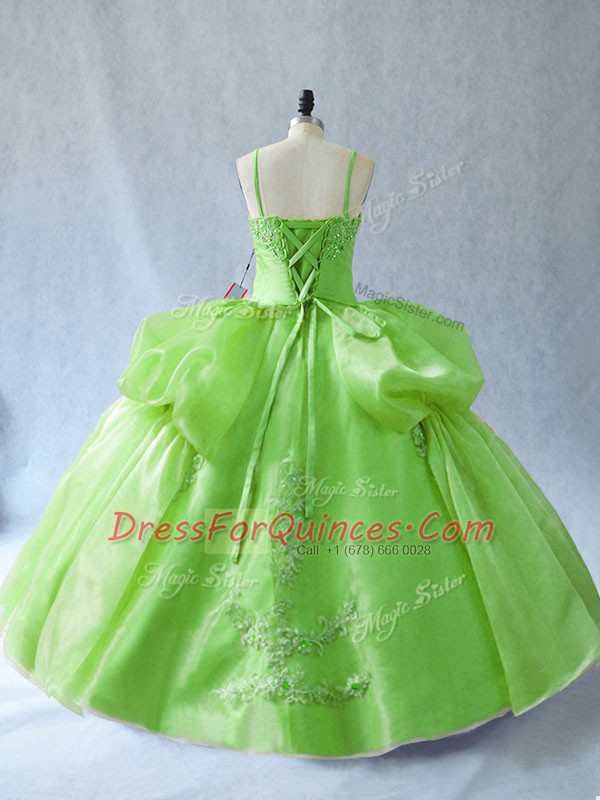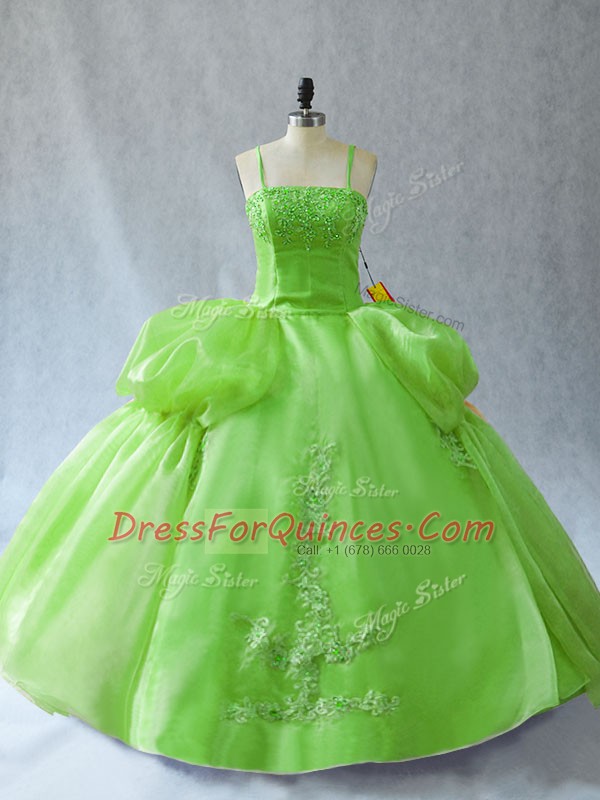 Simple Straps Lace Up Appliques Quince Ball Gowns Sleeveless