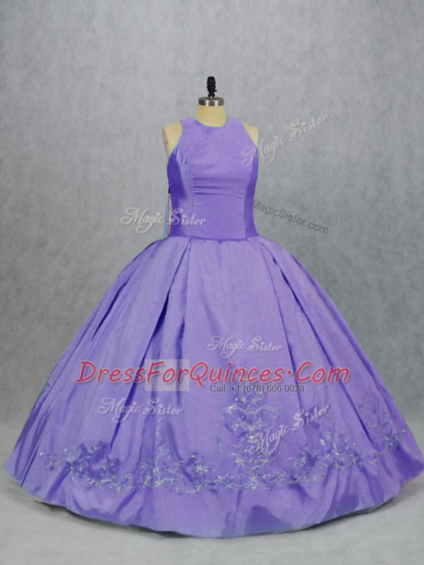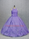 Sleeveless Floor Length Embroidery Zipper Vestidos de Quinceanera with Lavender