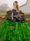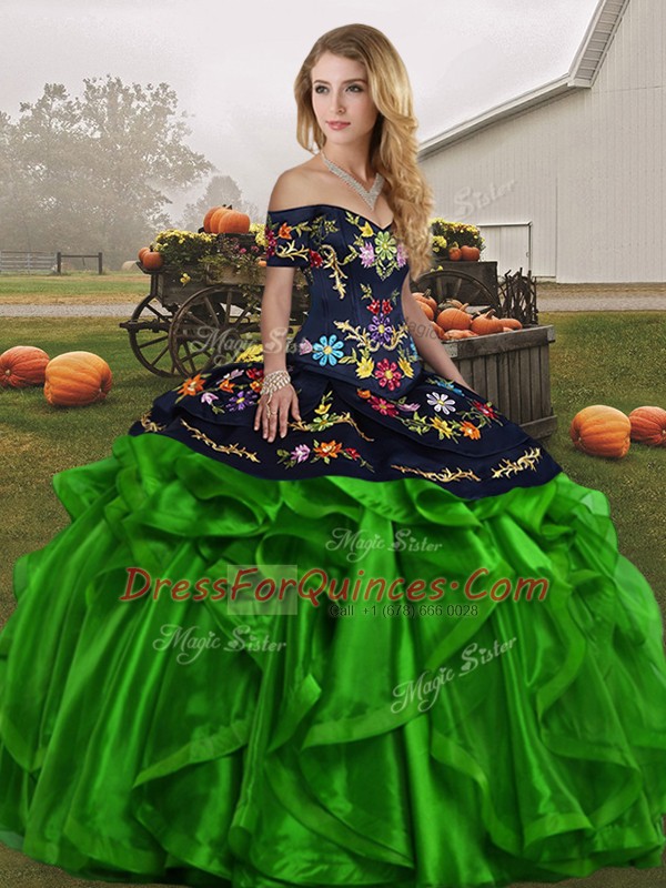 Sophisticated Floor Length Green 15th Birthday Dress Organza Sleeveless Embroidery and Ruffles
