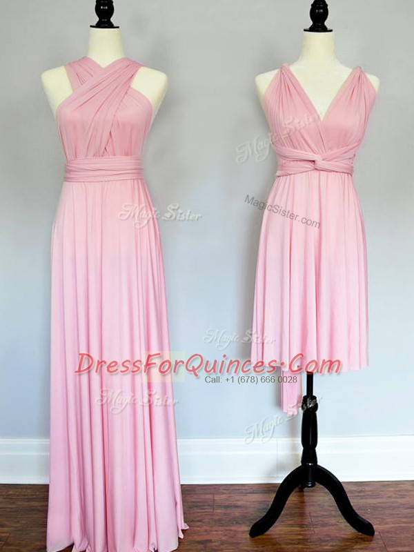 Baby Pink Dama Dress for Quinceanera Prom and Wedding Party with Ruching Halter Top Sleeveless Lace Up