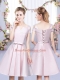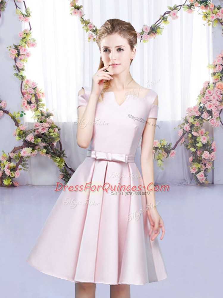 Baby Pink Sleeveless Mini Length Bowknot Lace Up Quinceanera Court Dresses