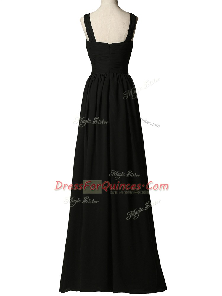 Black Chiffon Zipper Dama Dress Sleeveless Floor Length Appliques