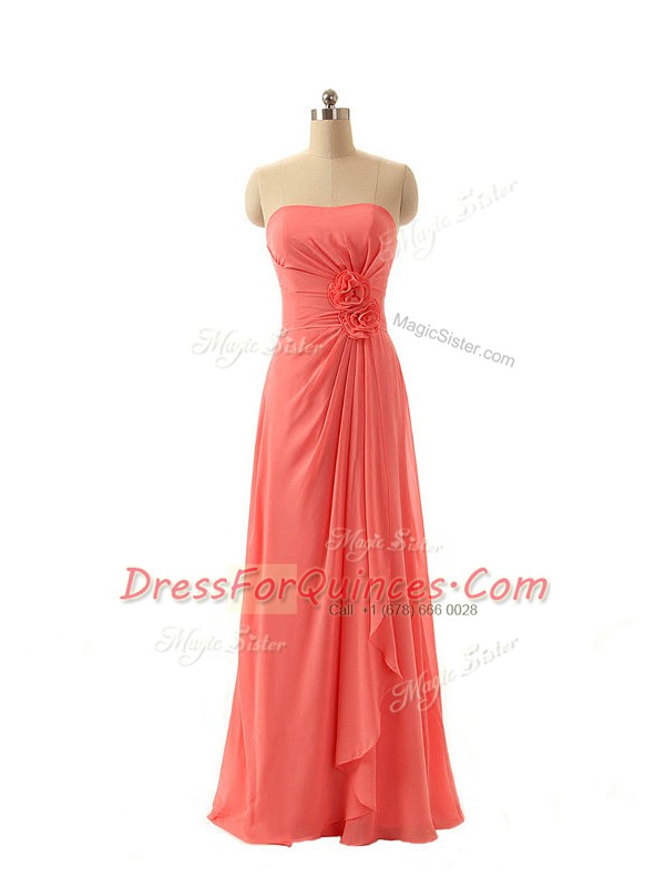 Chiffon Strapless Sleeveless Zipper Hand Made Flower Court Dresses for Sweet 16 in Watermelon Red