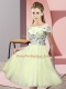 Clearance Yellow Short Sleeves Tulle Lace Up Quinceanera Dama Dress for Wedding Party