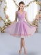 Custom Designed Lavender Sleeveless Knee Length Beading Zipper Dama Dress for Quinceanera