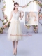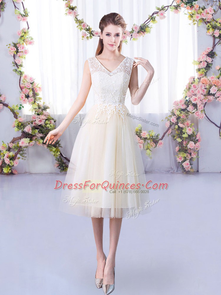 Custom Made Champagne Empire Lace Quinceanera Court Dresses Lace Up Tulle Sleeveless Tea Length
