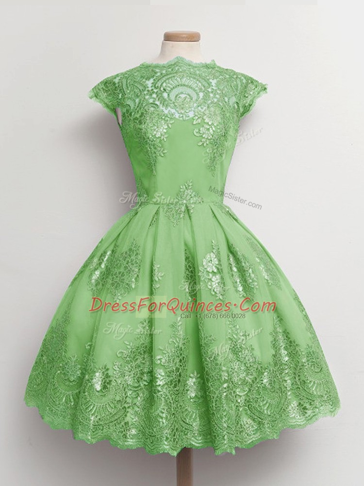 Cute Knee Length A-line Cap Sleeves Vestidos de Damas Lace Up