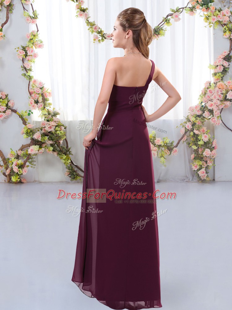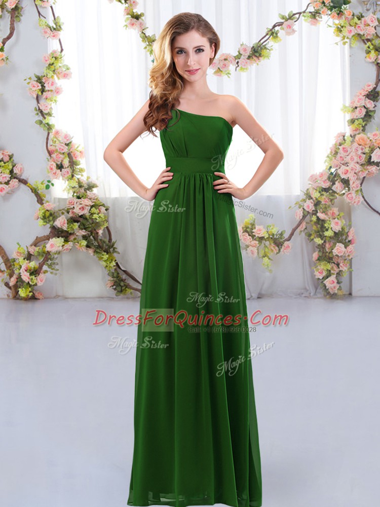 Dark Green Chiffon Zipper One Shoulder Sleeveless Floor Length Dama Dress Ruching