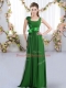 Dark Green Zipper Quinceanera Dama Dress Belt and Hand Made Flower Sleeveless Floor Length