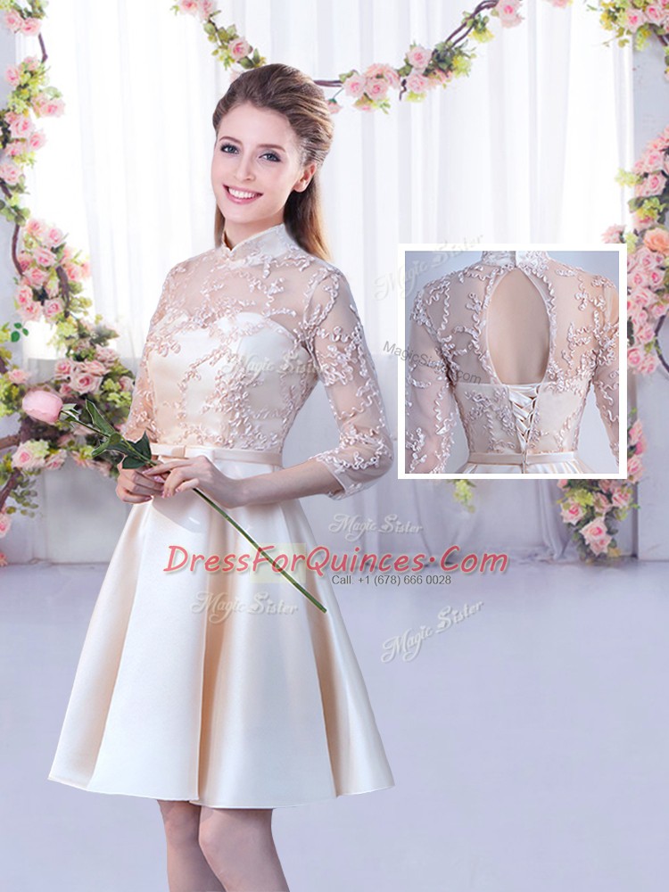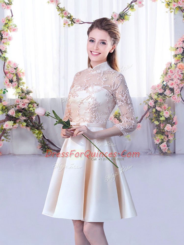 Delicate Champagne Half Sleeves Satin Lace Up Quinceanera Dama Dress for Wedding Party
