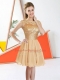 Delicate Knee Length Champagne Quinceanera Court of Honor Dress Chiffon Sleeveless Beading and Lace