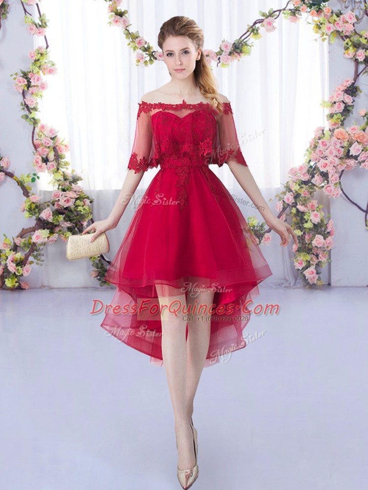Dramatic Wine Red Quinceanera Dama Dress Wedding Party with Lace Sweetheart Sleeveless Lace Up
