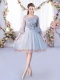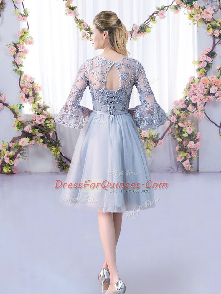 Dynamic Grey Quinceanera Dama Dress Wedding Party with Lace and Belt Scoop 3 4 Length Sleeve Lace Up
