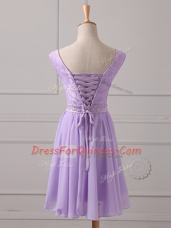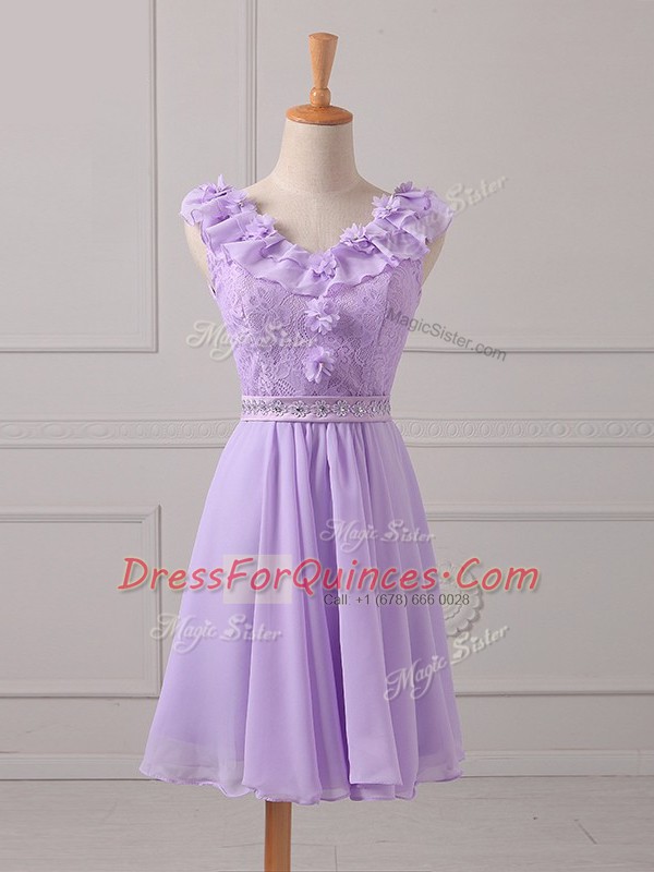 Elegant Lavender V-neck Neckline Lace and Appliques Vestidos de Damas Sleeveless Lace Up