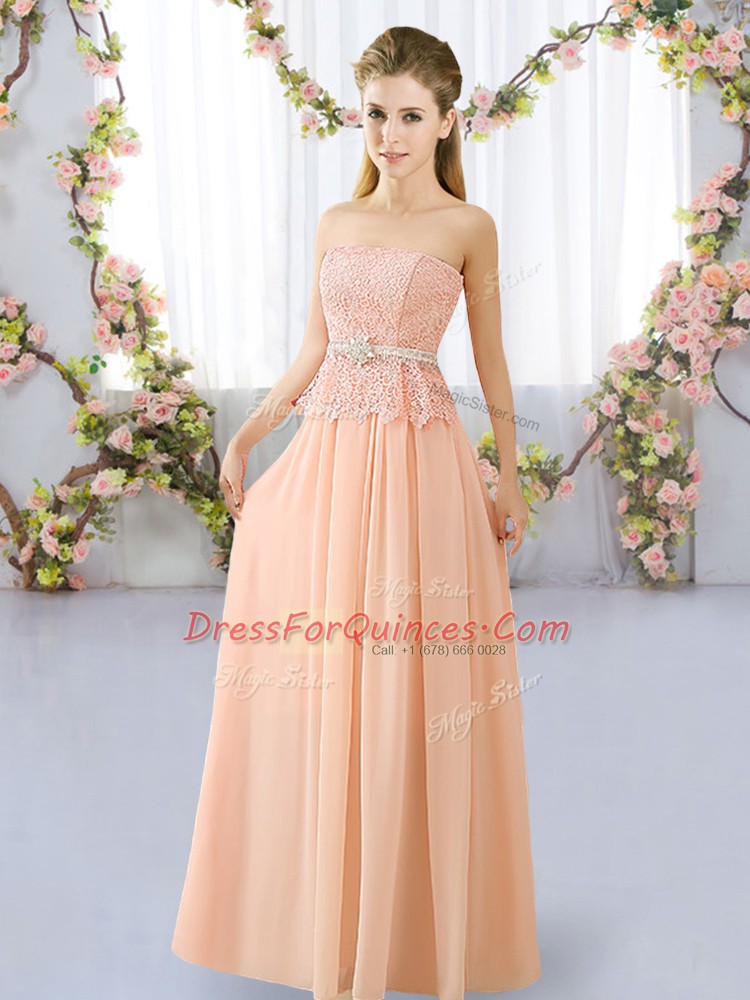 Elegant Peach Sleeveless Lace Floor Length Quinceanera Court Dresses