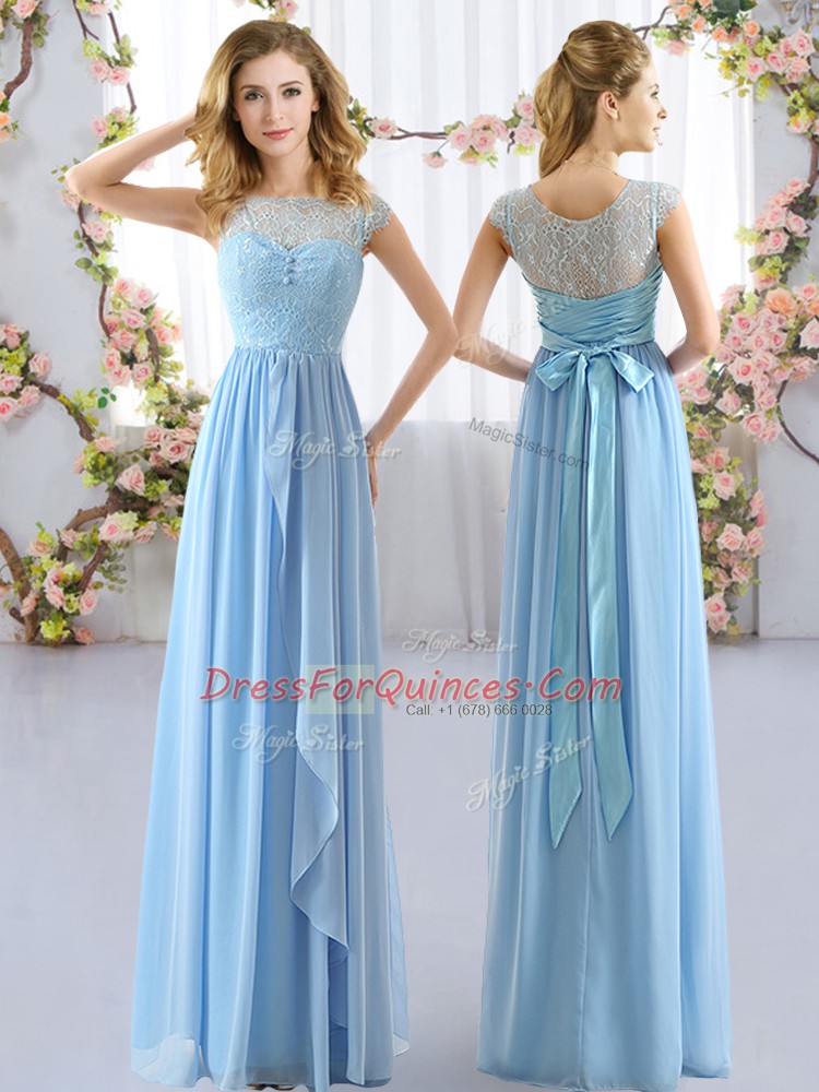 Fitting Light Blue Scoop Neckline Lace and Belt Quinceanera Court Dresses Cap Sleeves Side Zipper