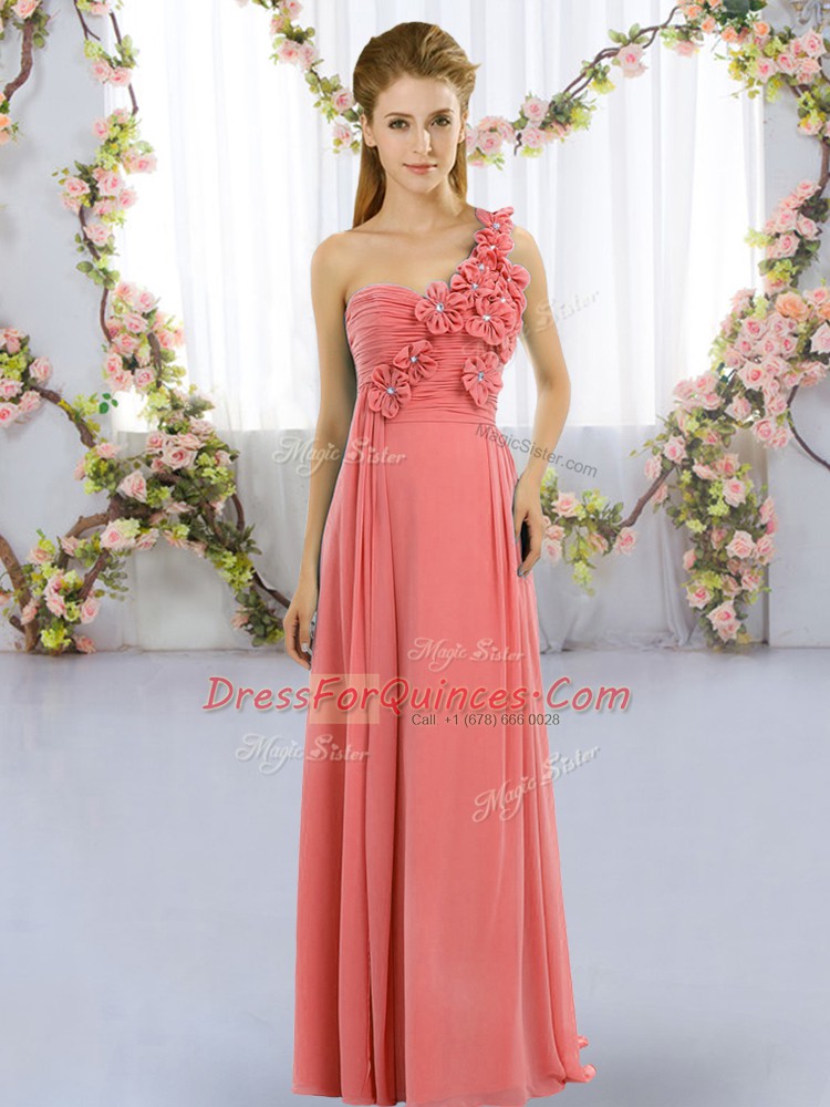 Flare Chiffon Sleeveless Floor Length Court Dresses for Sweet 16 and Hand Made Flower