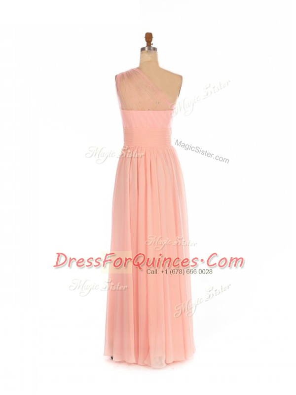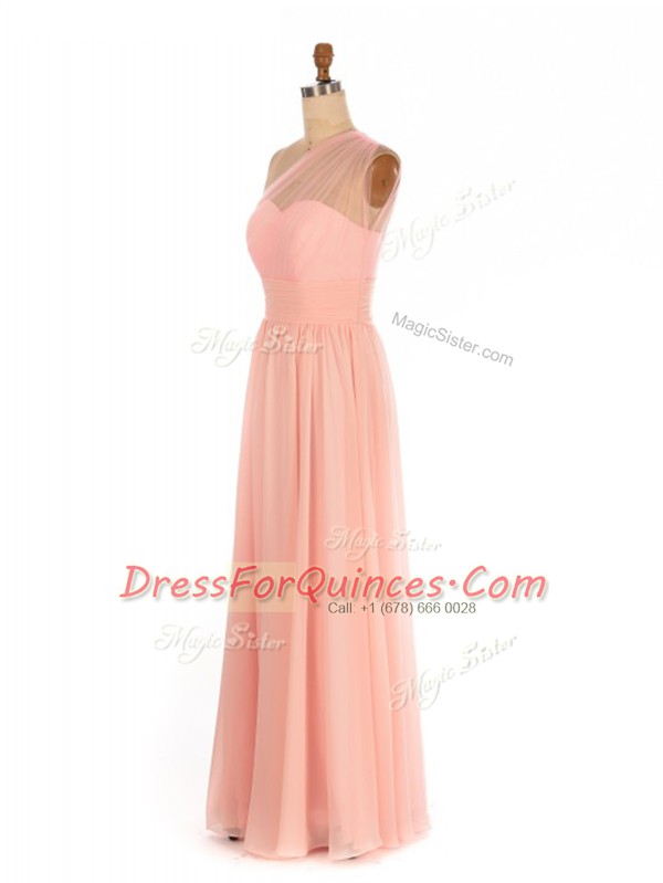 Flare Floor Length Empire Sleeveless Peach Dama Dress for Quinceanera Side Zipper