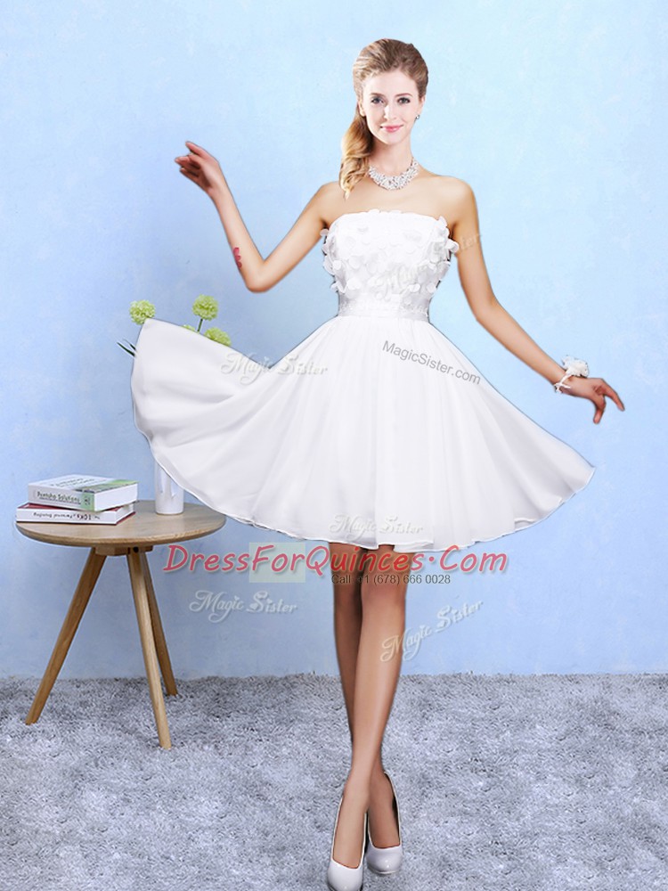 Glittering Appliques Damas Dress White Lace Up Sleeveless Knee Length