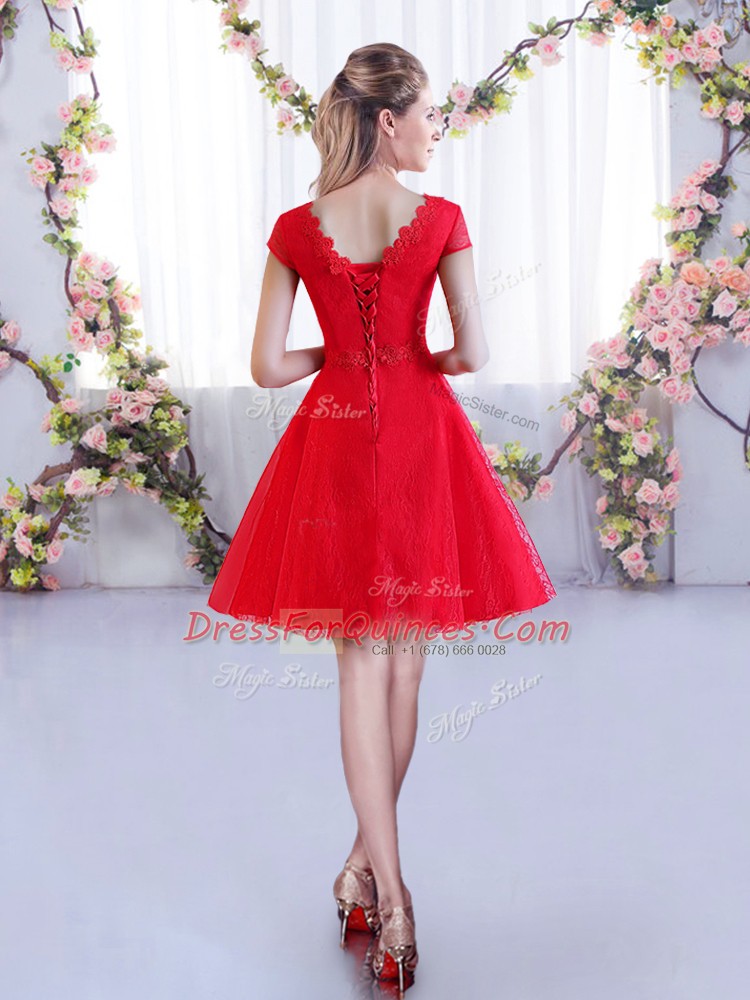 Green Dama Dress for Quinceanera Wedding Party with Lace V-neck Cap Sleeves Lace Up