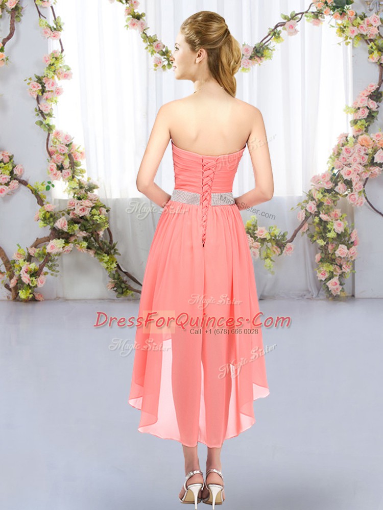 Green Empire Belt Court Dresses for Sweet 16 Lace Up Chiffon Sleeveless High Low