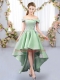 Green Satin Lace Up Off The Shoulder Sleeveless High Low Court Dresses for Sweet 16 Appliques