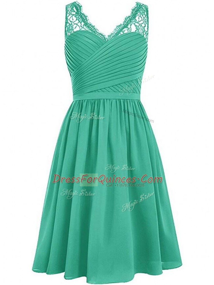 High End V-neck Sleeveless Chiffon Quinceanera Dama Dress Lace and Ruching Side Zipper
