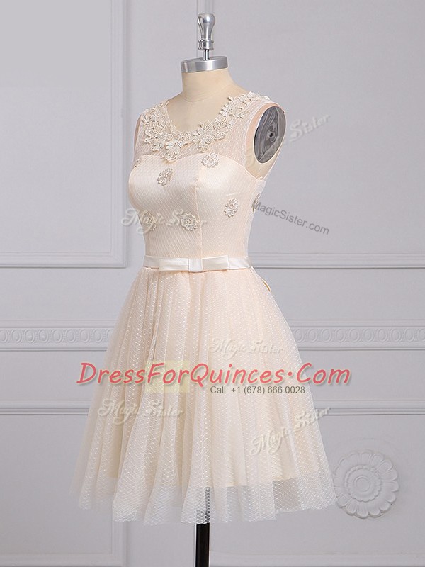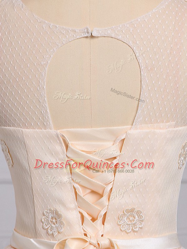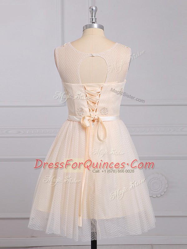 Hot Sale Appliques and Belt Quinceanera Court of Honor Dress Champagne Lace Up Sleeveless Mini Length