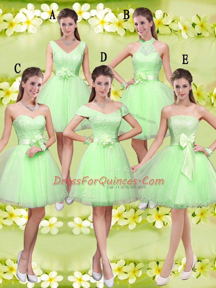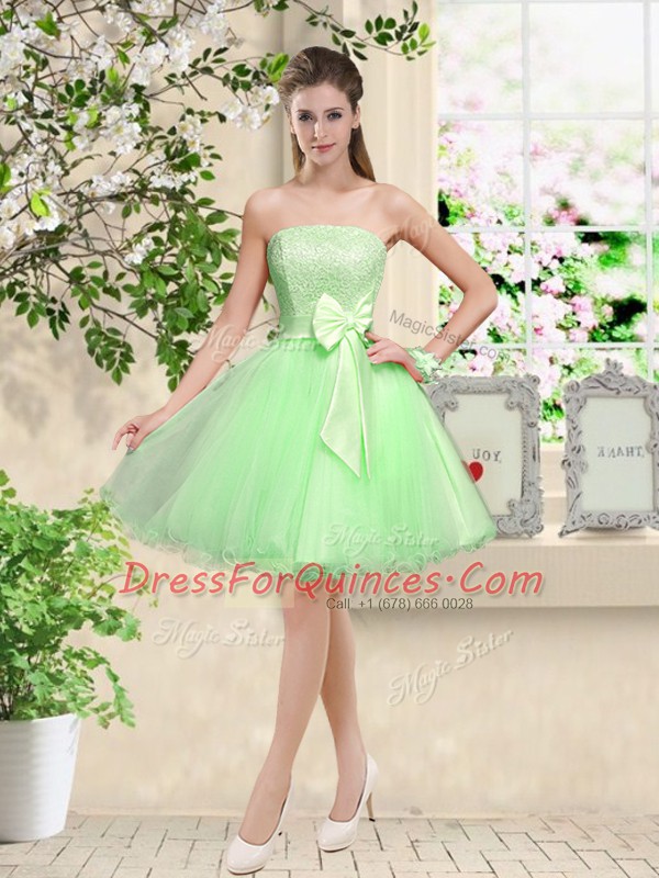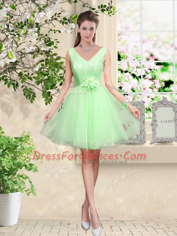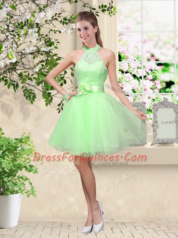 Ideal Knee Length A-line Sleeveless Dama Dress for Quinceanera Lace Up