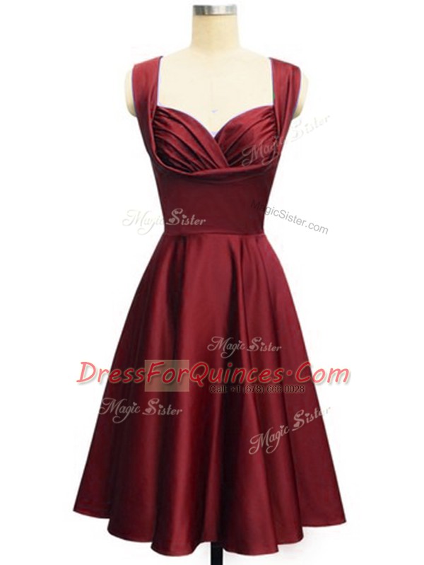 Knee Length Wine Red Court Dresses for Sweet 16 Straps Sleeveless Lace Up