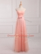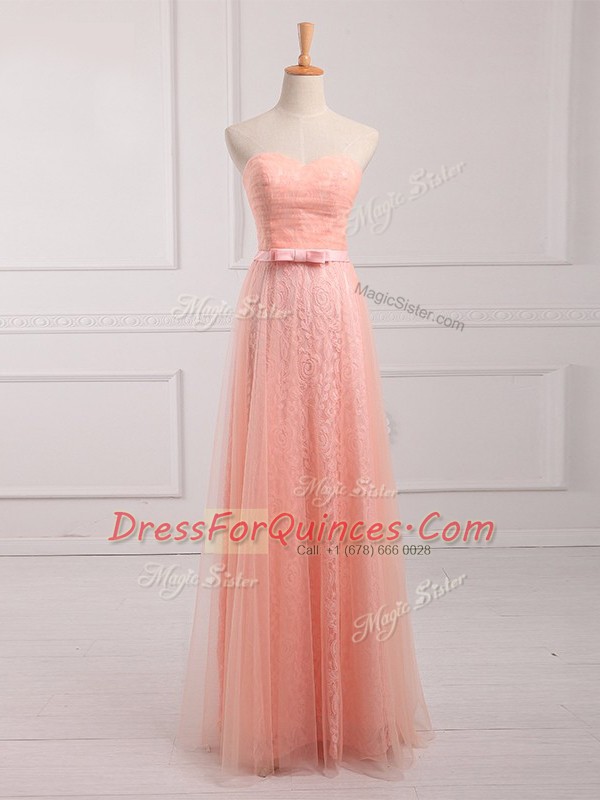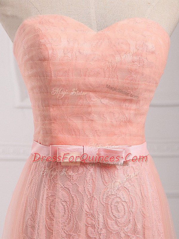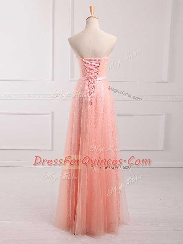 Latest Peach Sweetheart Lace Up Belt Dama Dress for Quinceanera Sleeveless