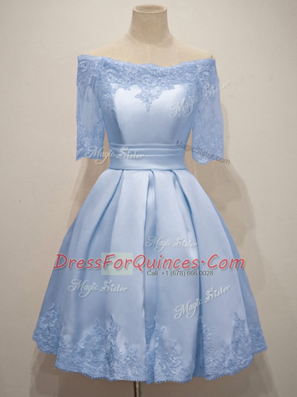 Light Blue Half Sleeves Lace Knee Length Quinceanera Court Dresses