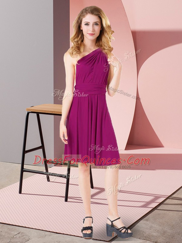 Mini Length Fuchsia Vestidos de Damas One Shoulder Sleeveless Criss Cross