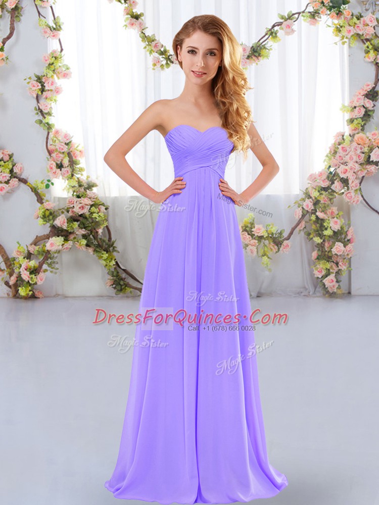 Most Popular Lavender Chiffon Lace Up Dama Dress for Quinceanera Sleeveless Floor Length Ruching