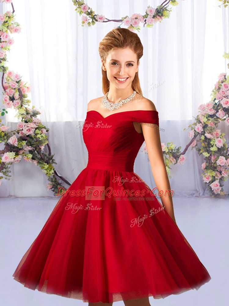 New Style Red Lace Up Dama Dress for Quinceanera Ruching Sleeveless Knee Length