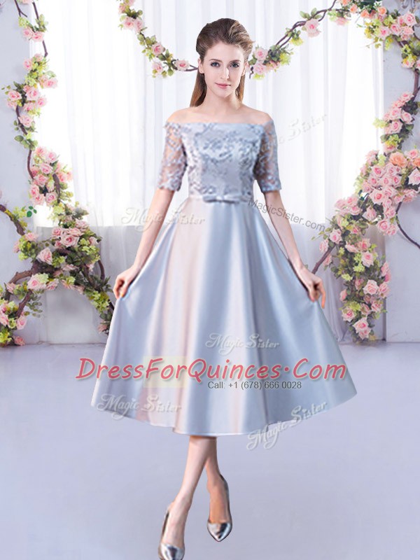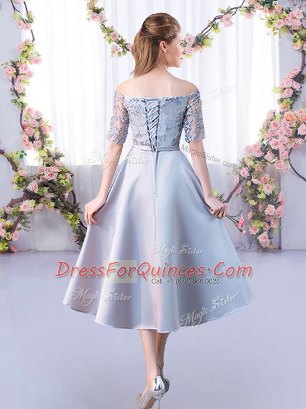 Off The Shoulder Half Sleeves Satin Quinceanera Dama Dress Lace Lace Up