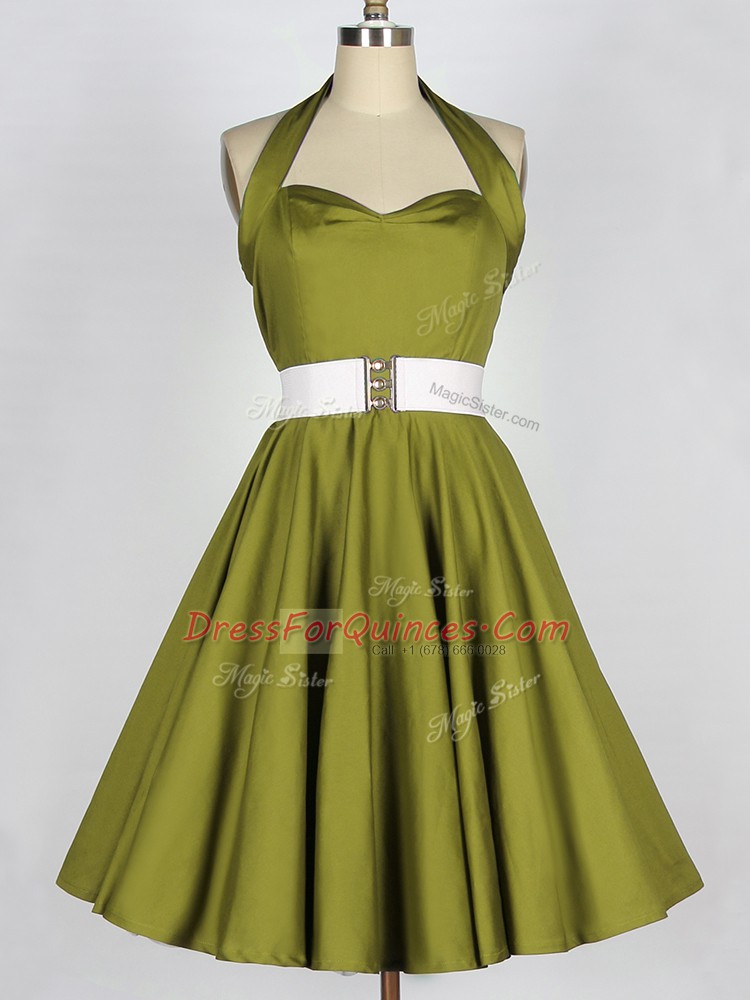 Olive Green Halter Top Lace Up Belt Dama Dress Sleeveless