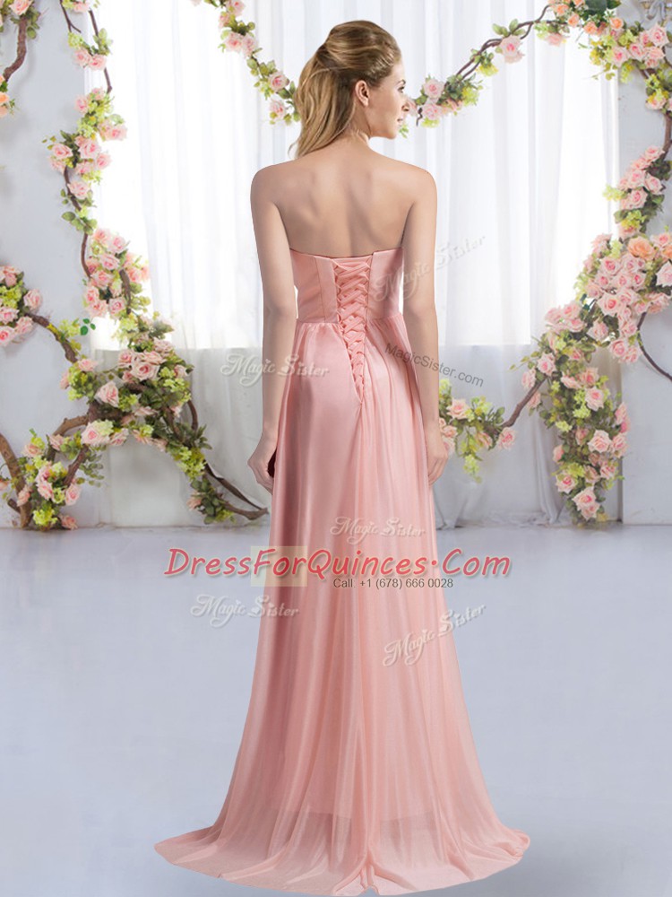 On Sale Strapless Sleeveless Chiffon Quinceanera Court Dresses Beading Sweep Train Lace Up