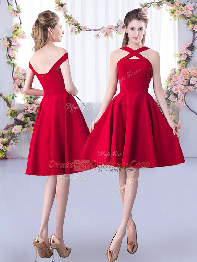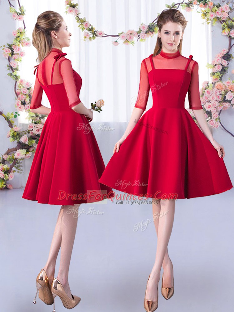 Red A-line Satin Scoop 3 4 Length Sleeve Ruching Knee Length Zipper Vestidos de Damas