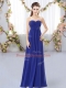 Royal Blue Chiffon Zipper Sweetheart Sleeveless Floor Length Quinceanera Court of Honor Dress Ruching