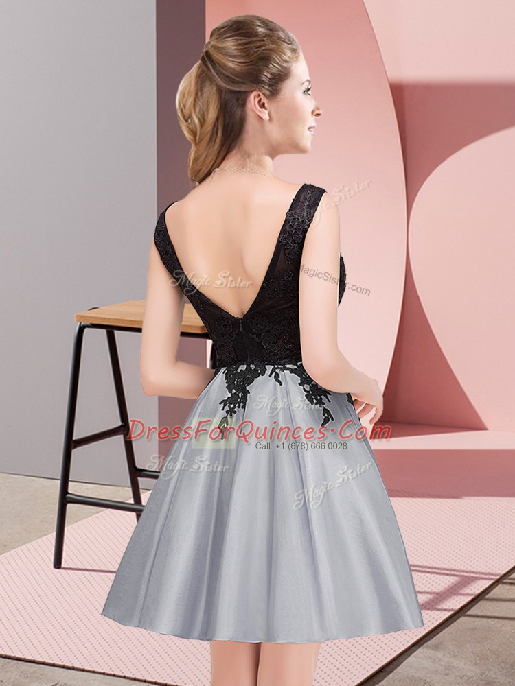 Satin Scoop Sleeveless Zipper Lace Quinceanera Court of Honor Dress in Grey