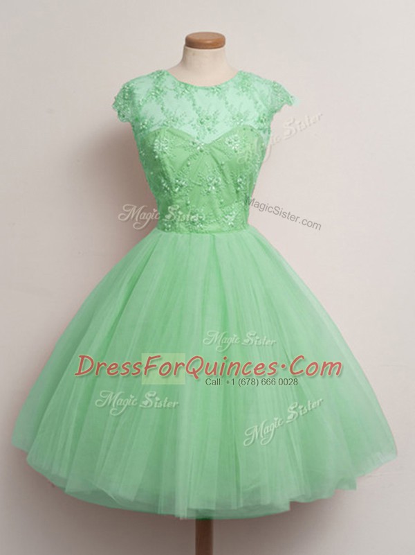 Scoop Cap Sleeves Tulle Vestidos de Damas Lace Lace Up