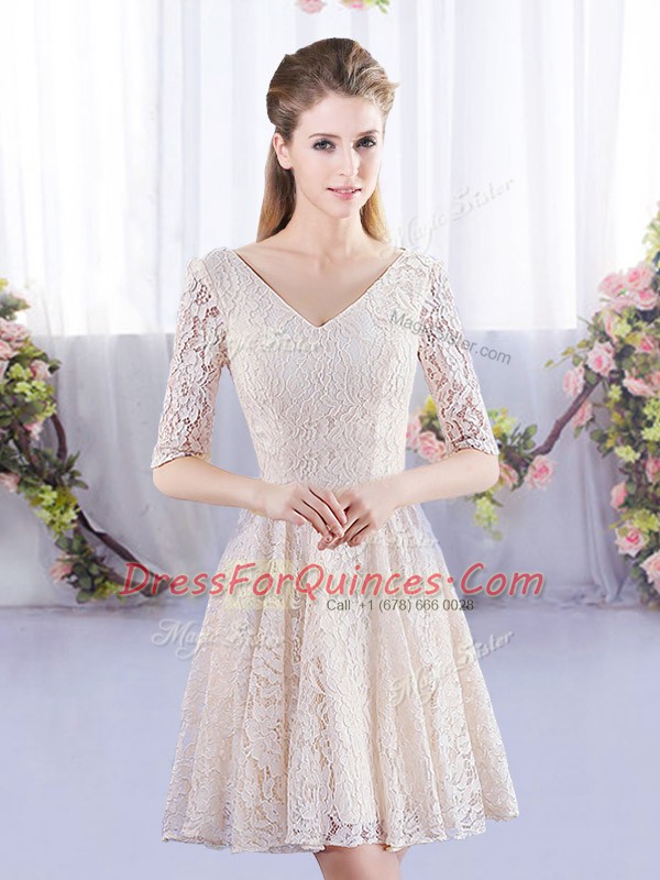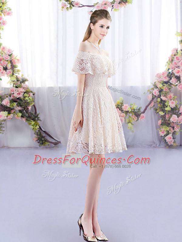 Short Sleeves Lace Up Mini Length Lace Quinceanera Court of Honor Dress