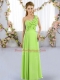 Sleeveless Chiffon Floor Length Lace Up Damas Dress in with Hand Made Flower