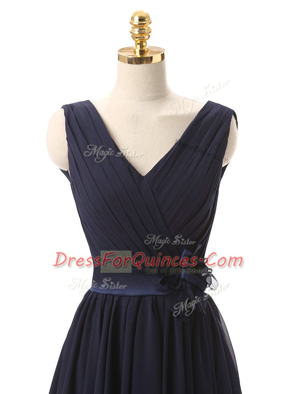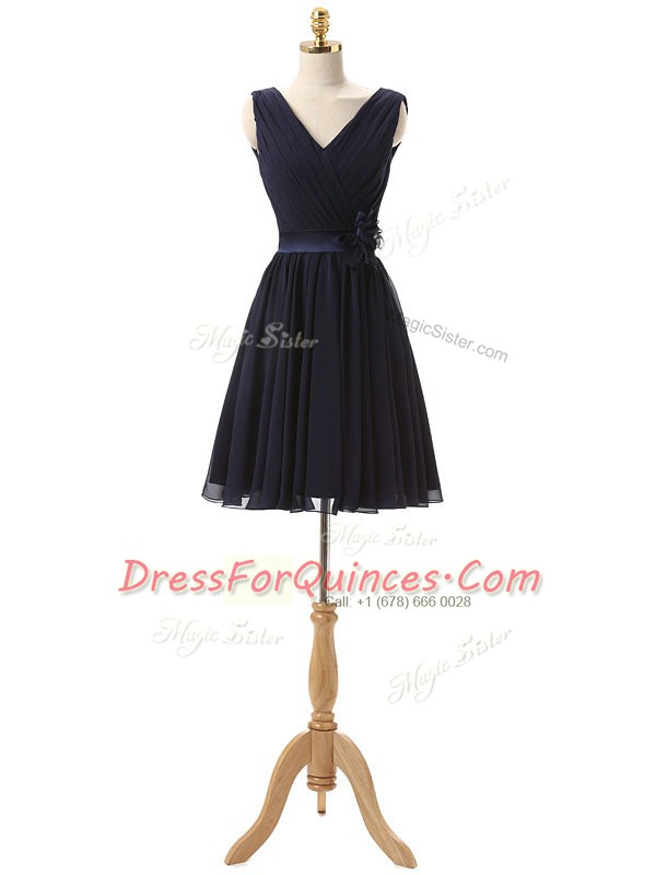 Sleeveless Chiffon Mini Length Lace Up Dama Dress for Quinceanera in Navy Blue with Hand Made Flower