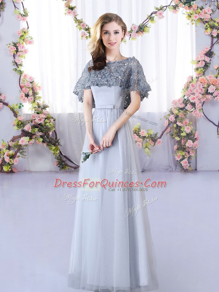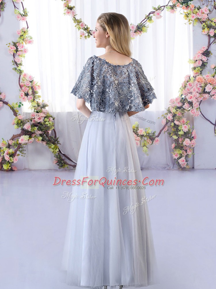 Smart Grey Sleeveless Tulle Lace Up Dama Dress for Wedding Party