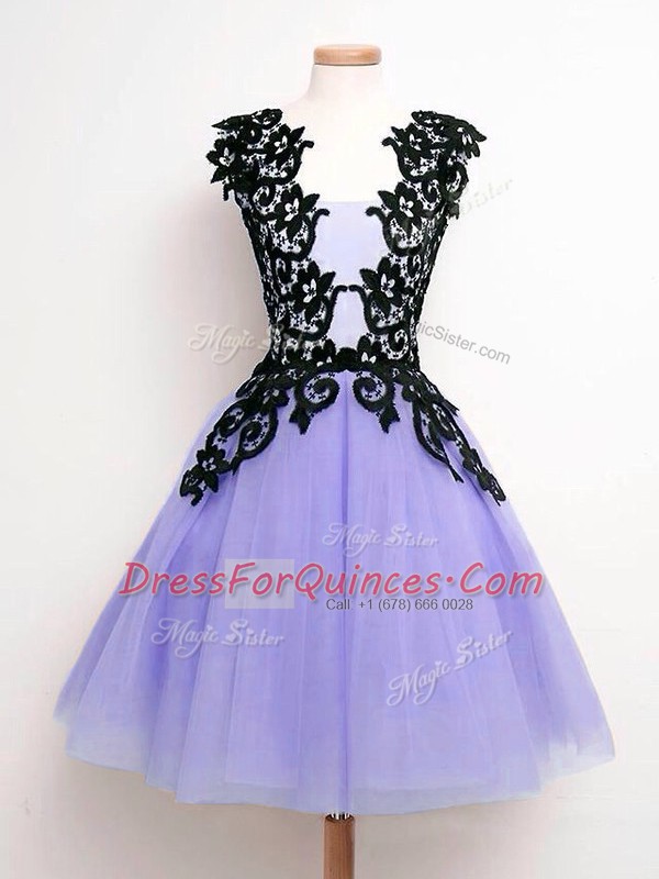 Suitable Tulle Sleeveless Knee Length Quinceanera Court of Honor Dress and Lace